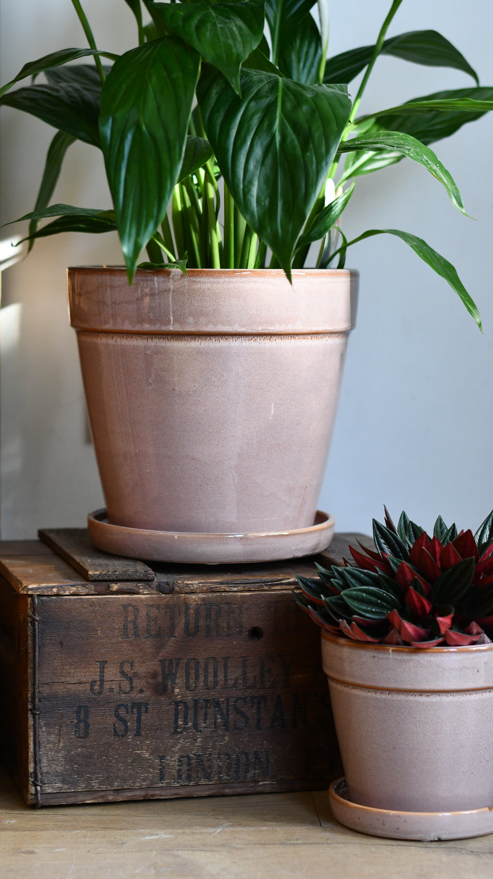 The Clint Pot is a classic glazed houseplant pot with a soft pink finish that catches the light beautifully, adding warmth and gentle colour without overpowering the plant. Its traditional tapered shape gives it a timeless feel, while the matching saucer brings both charm and practicality. This is the kind of pot that feels at home in cosy period houses, Victorian-inspired interiors, or anywhere you want to introduce a subtle touch of colour alongside your greenery.