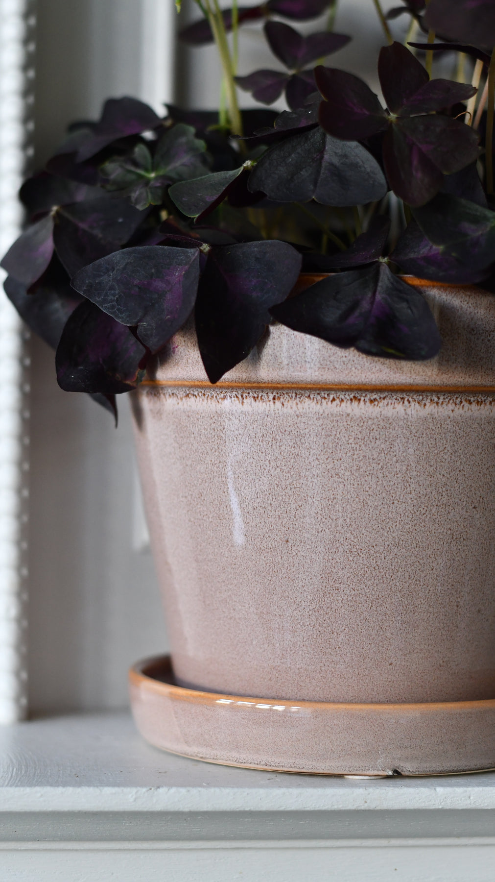 The Clint Pot is a classic glazed houseplant pot with a soft pink finish that adds warmth and gentle colour to your plant styling. The glaze shifts subtly in the light, giving the pot a calm, elegant feel without overpowering the plant itself. Its traditional tapered shape keeps the look timeless, while the matching saucer adds both charm and everyday practicality. This is a pot that feels equally at home in cosy period interiors or modern spaces that need a softer touch.
