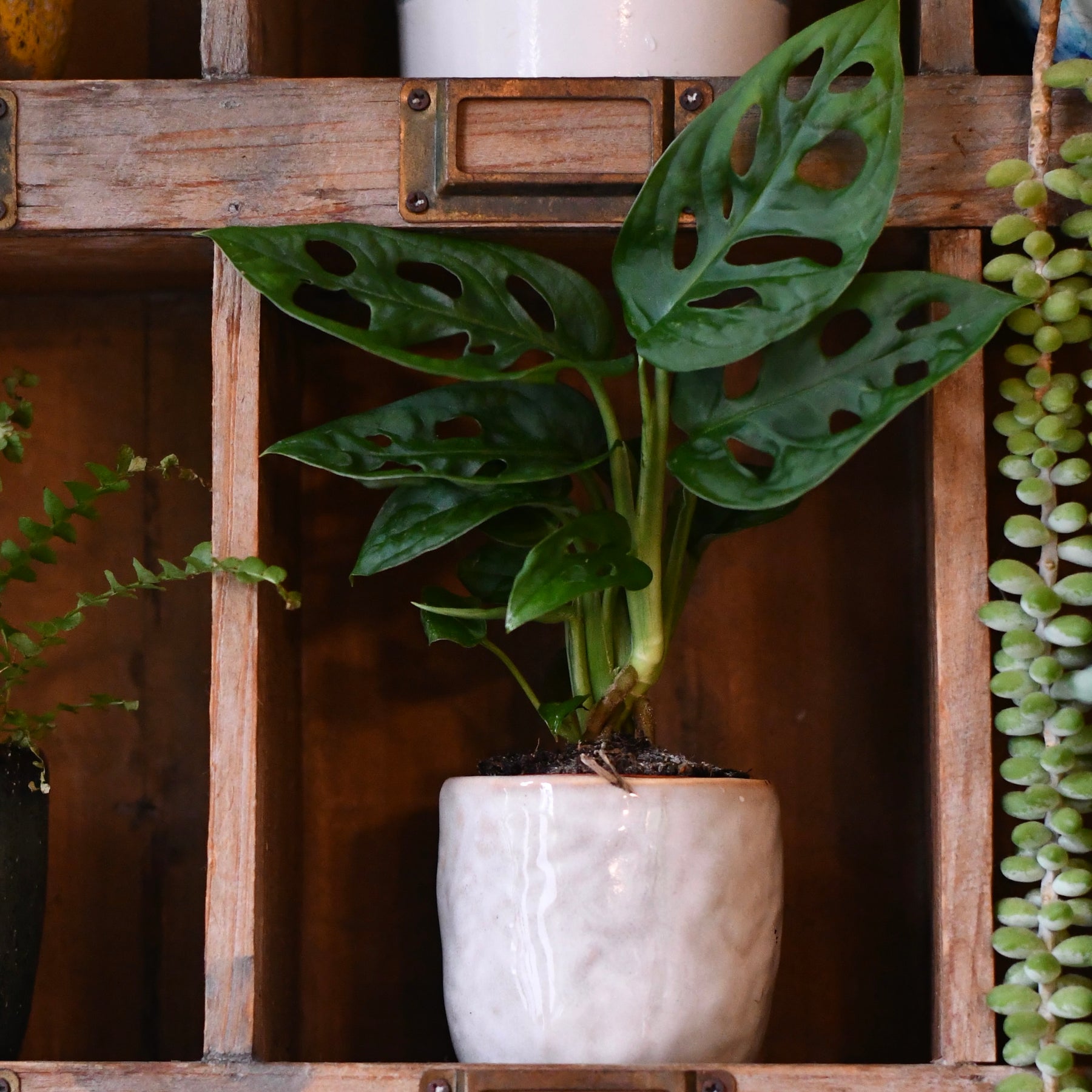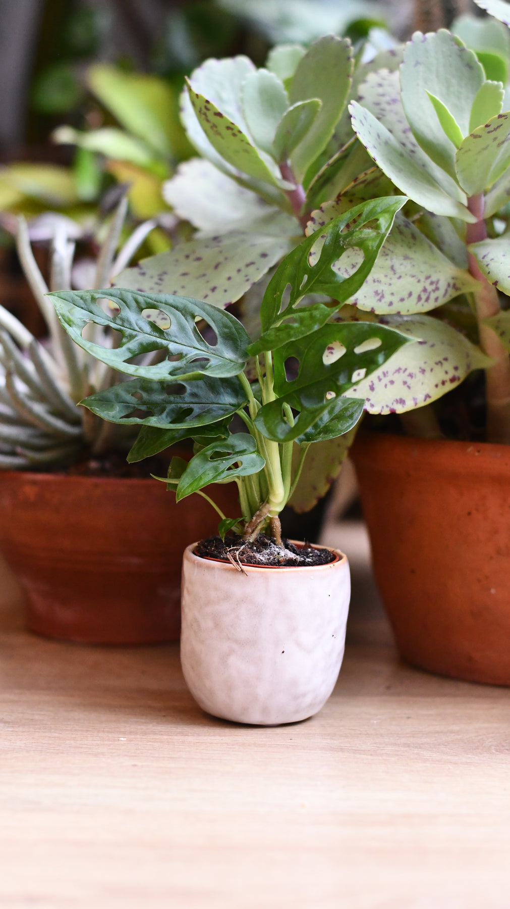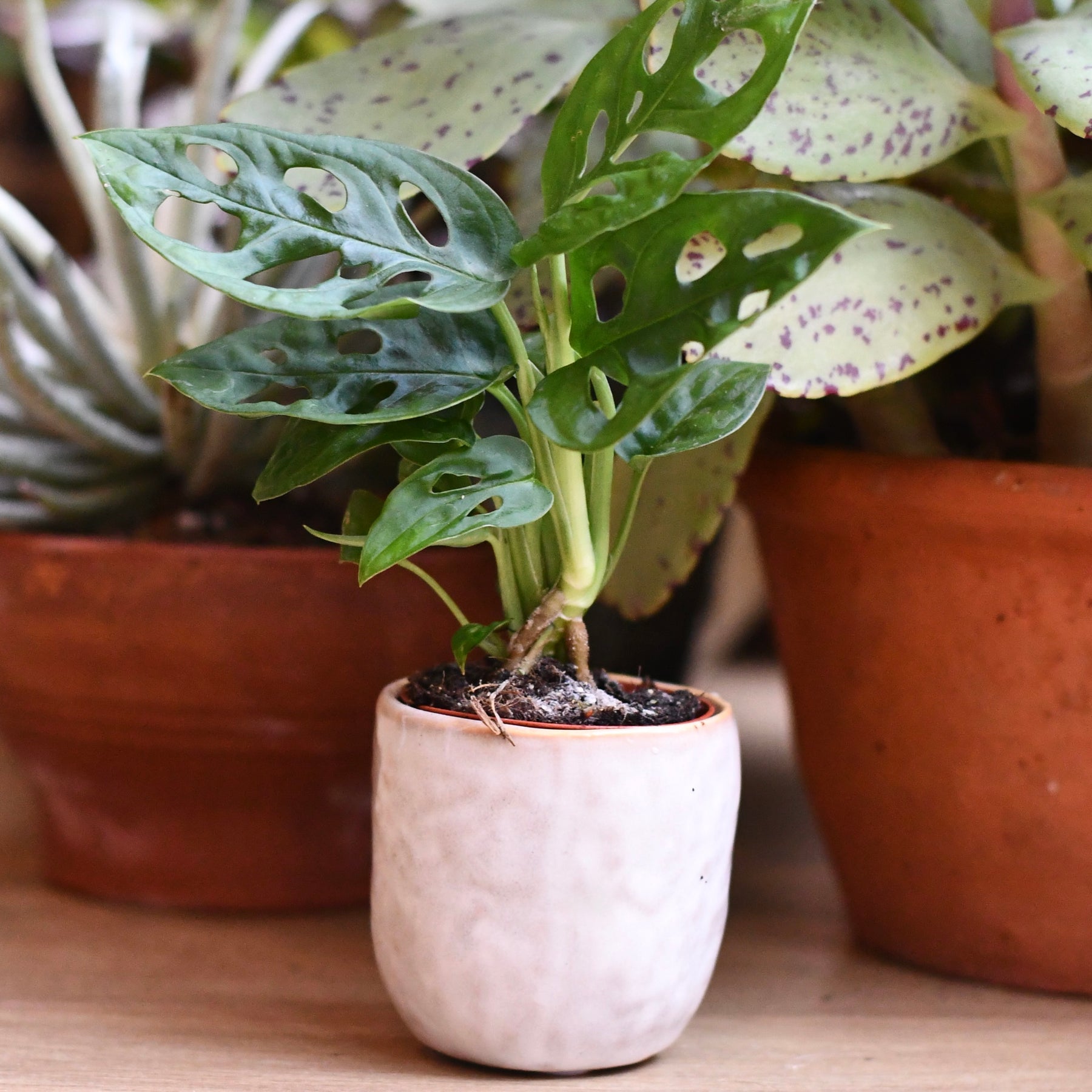 At 7cm high and 7cm wide, the Ivoor Pot is the perfect size for smaller houseplants such as Peperomias, Calatheas, or trailing Pothos. The rounded, slightly irregular shape adds charm, making this pot an easy choice if you’re looking for something understated but full of character.