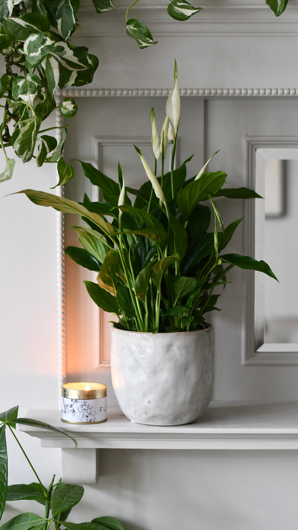 The ceramic pot suits the Peace Lily’s soft, flowing shape perfectly. Place it on a shelf, bedside table or quiet hallway corner — anywhere you want a gentle, calming presence. The candle adds warmth and makes the space feel instantly more welcoming.