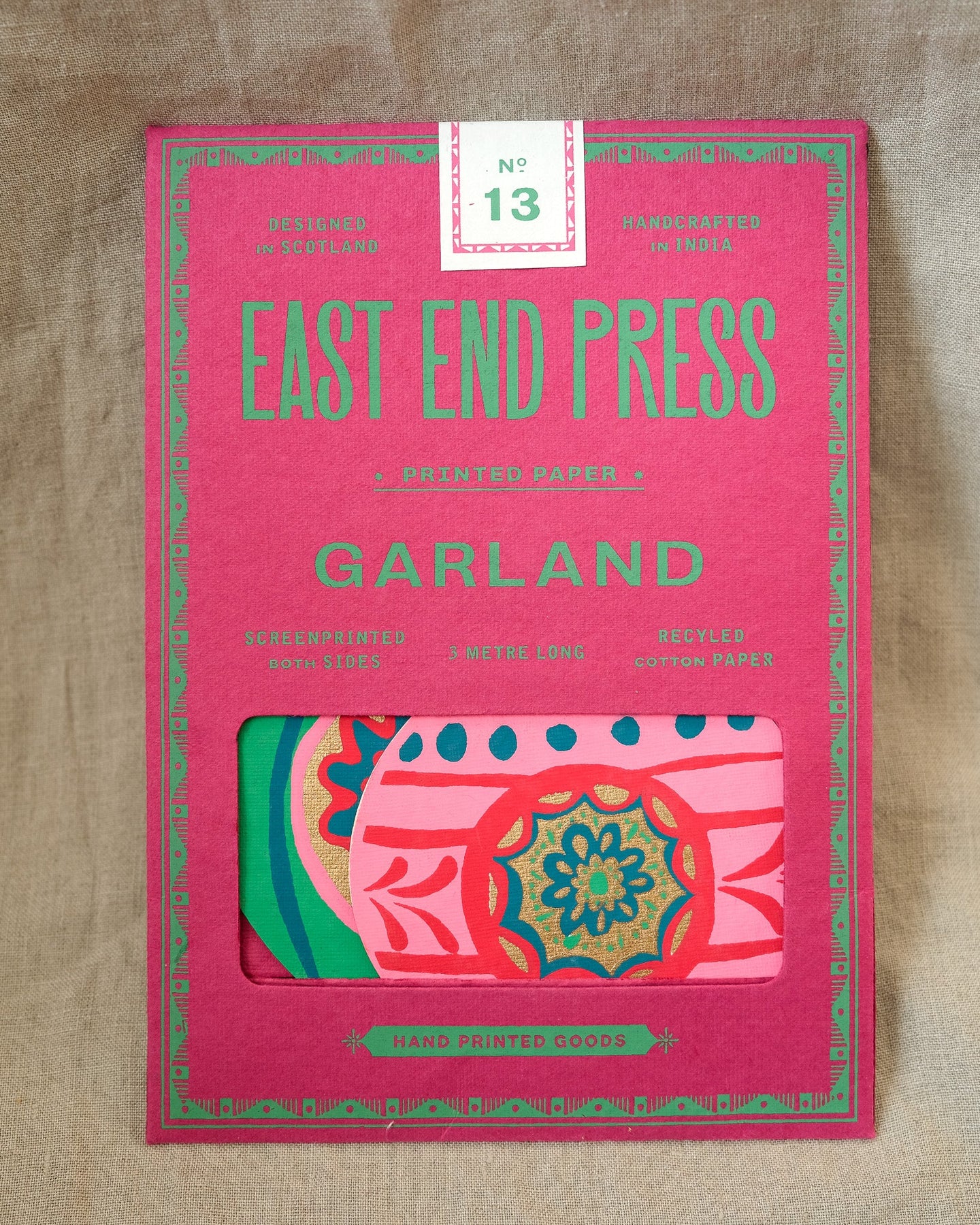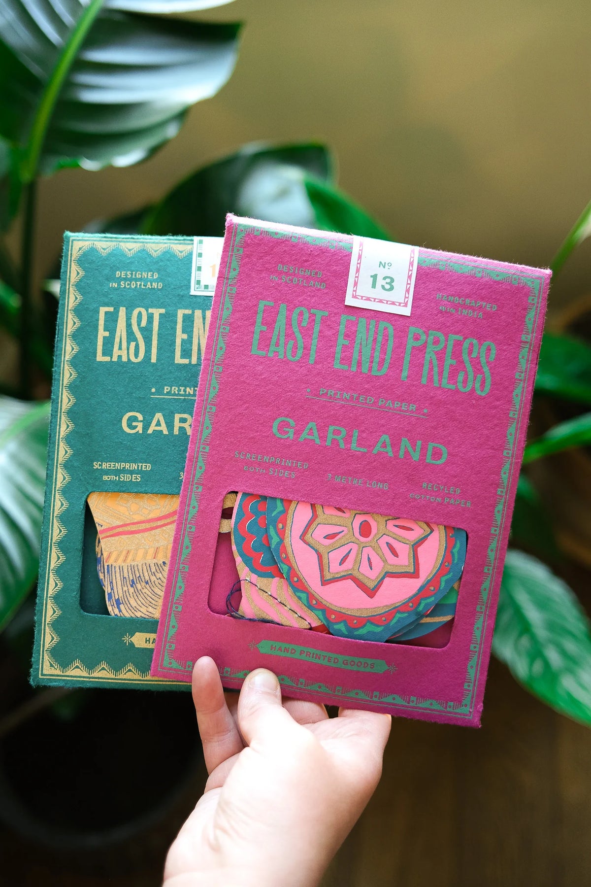 We’re proud to stock designs from East End Press, a small independent brand that shares our love of sustainability and craft. Each garland is screen printed by hand on both sides by talented artisans in Jaipur, using recycled paper and strong cotton thread. Every piece is slightly unique, reflecting the skill and creativity that go into every detail.