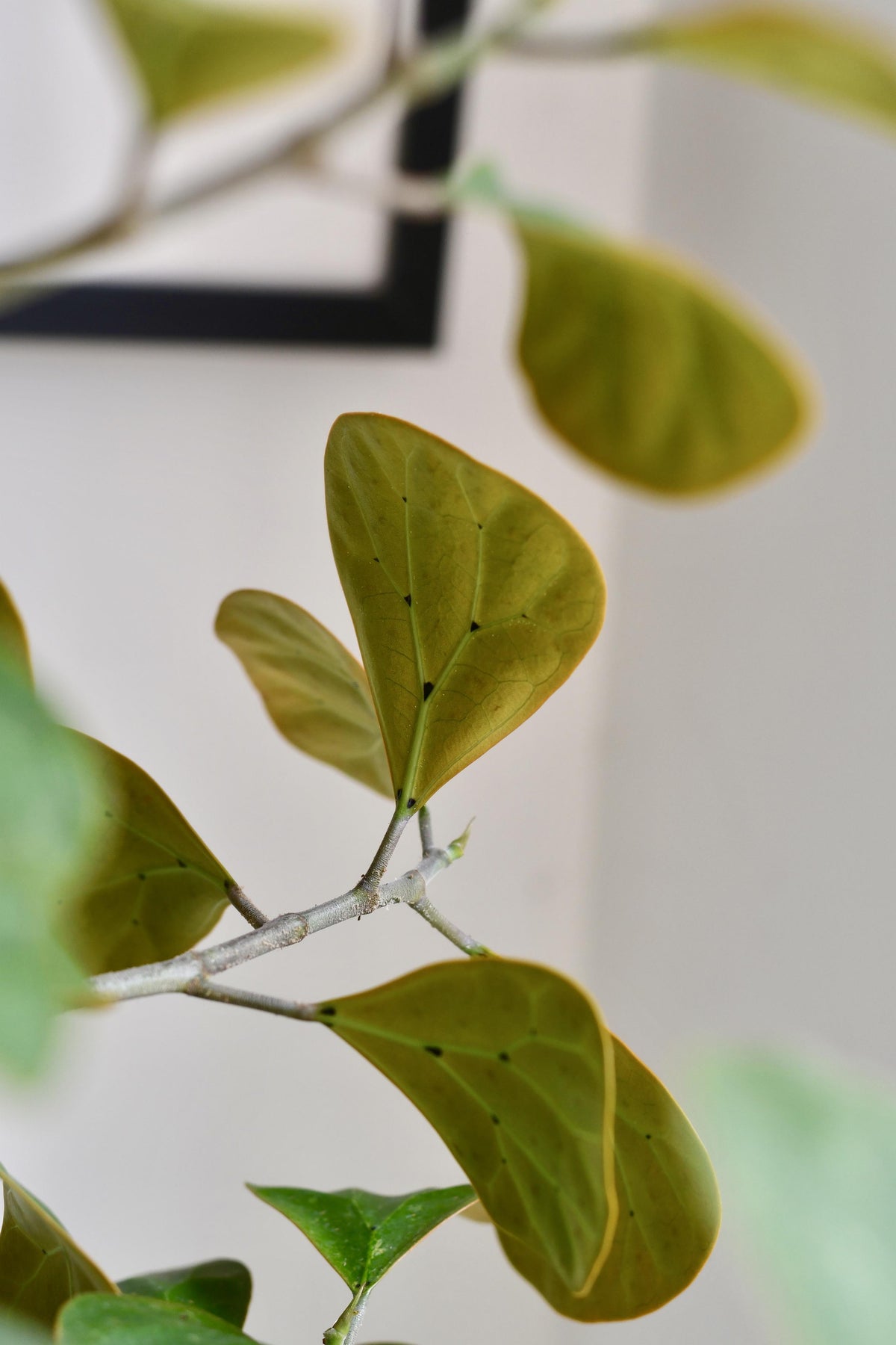 Also known as the Mistletoe Fig, this is the only Ficus species that will produce inedible pea sized fruits, ‘figs’ all year round even when cultivated indoors. Figs turn from dull yellow to orange and red.