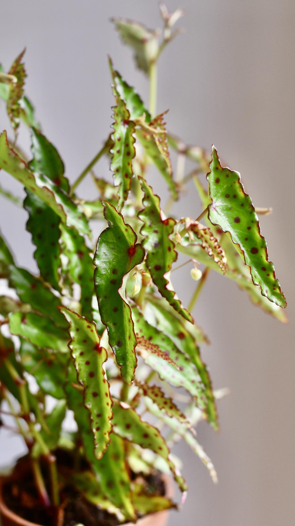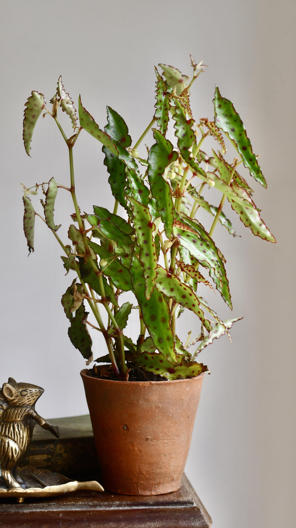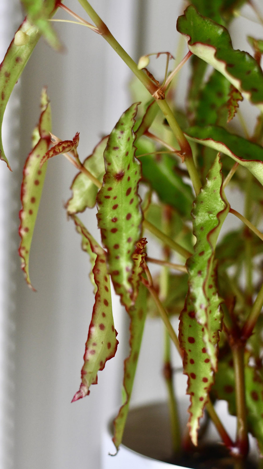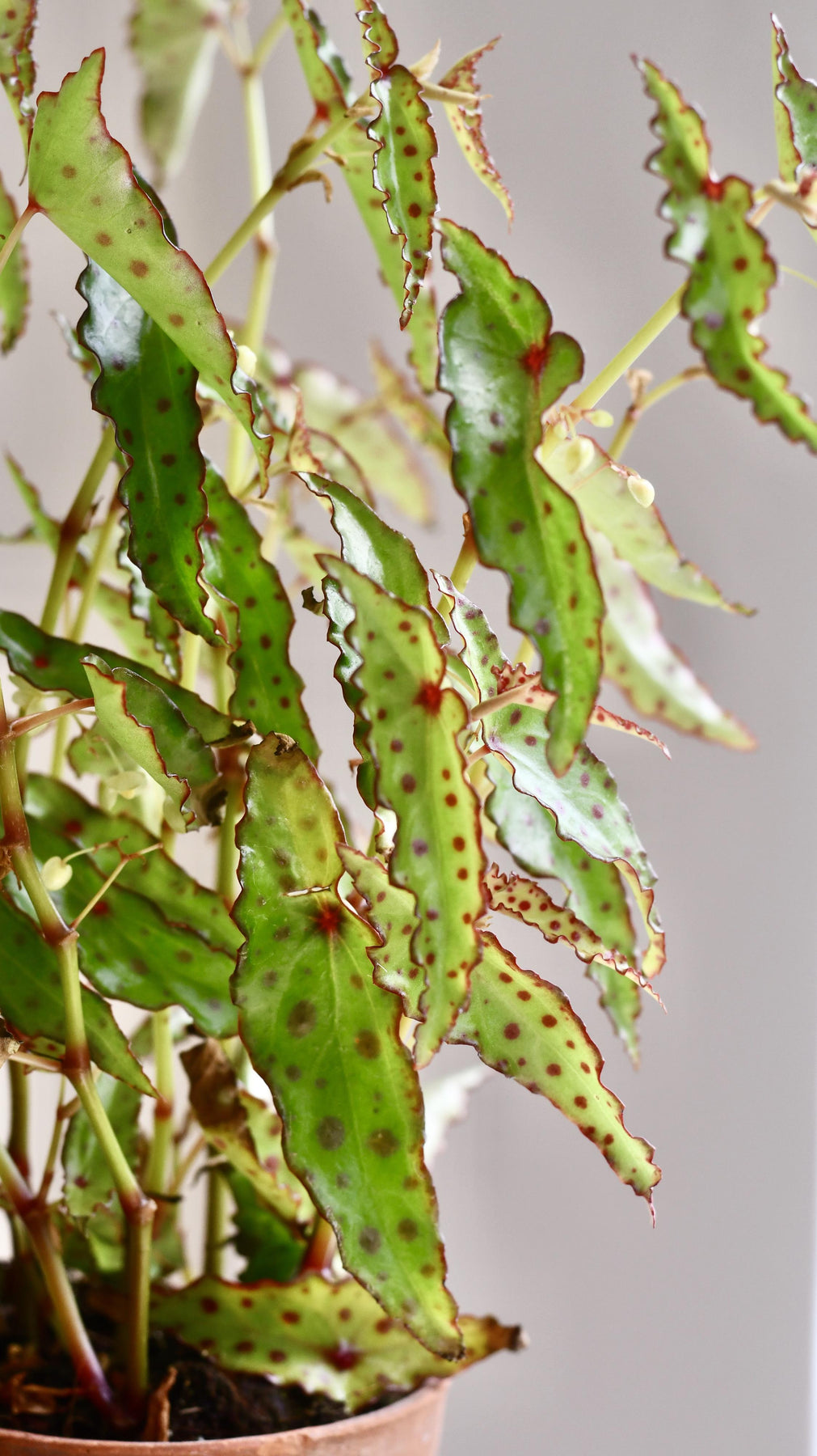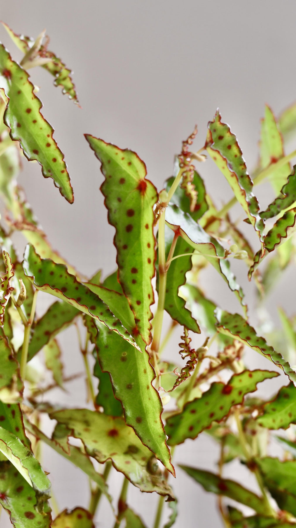 Begonia Amphioxus is a rare species of Begonia from Borneo, a giant, rugged island in Southeast Asia’s Malay Archipelago and was only described in 1990. Begonia amphioxus has become very sought after because of its stunning good looks and beautiful painted green leaves with red spots and edges.