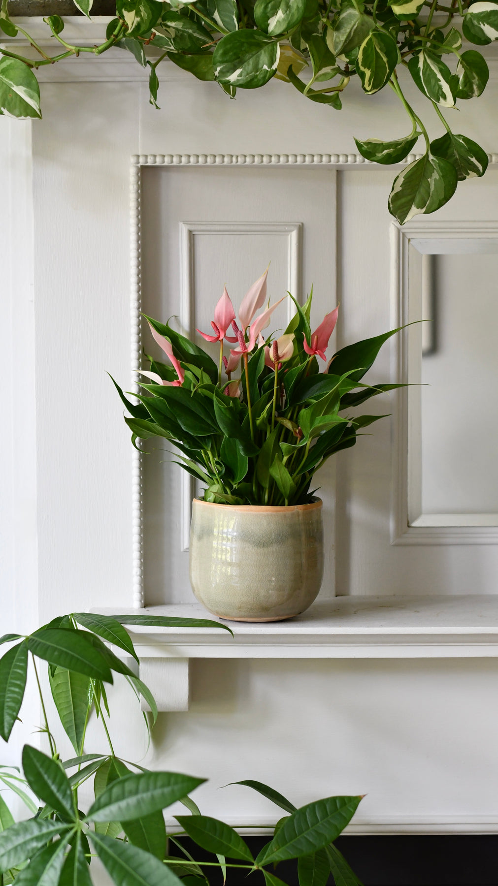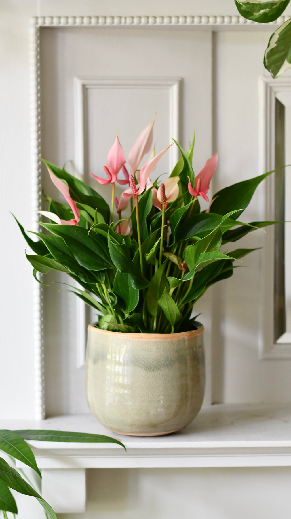 This combination blends subtle beauty with modern design. The light pink blooms of Anthurium ‘Lilli’ look stunning against the understated finish of the Como pot — perfect for neutral interiors, Scandi-inspired spaces, or anywhere that needs a soft, uplifting accent. Place it on a bedside table, hallway console, or as a centrepiece on a coffee table for a touch of tropical charm.