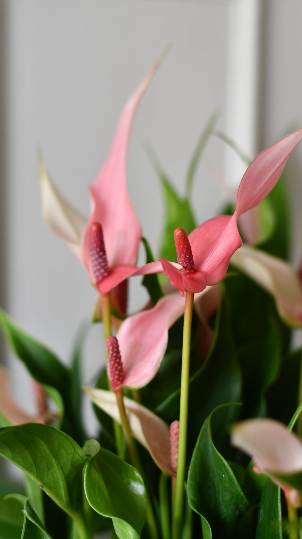 ‘Lilli’ is one of the most compact and long-flowering Anthuriums, prized for its soft pink hue.